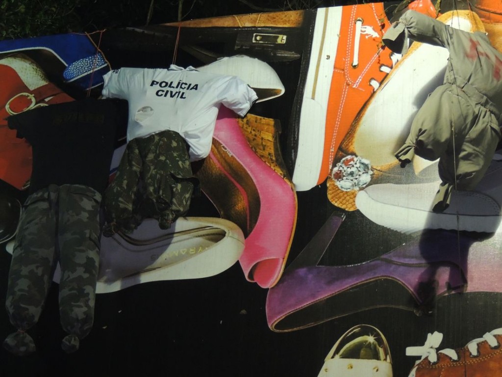 Bonecos aparecem pendurados em outdoor na RS 115