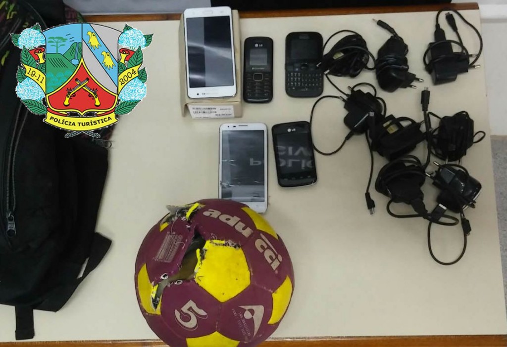 Brigada apreende bola com celulares que seria arremessada para dentro do Presídio