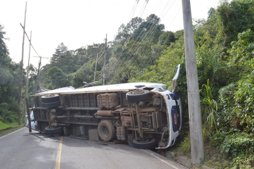 Um acidente por volta das 10h15min da manhã desta sexta-feira, dia 16, fechou a Rua Miguel Tissot. Um caminhão da cidade de São Vendelino, placas ISG 1236, carregado com cabos de vassoura seguia pela RS 115 quando ficou sem freios. O motorista saiu da rodovia ingressando na Rua Miguel Tissot. Como a descida é forte o caminhão começou ganhar velocidade e o motorista não teve alternativa e teve que jogar o caminhão contra o barranco após bater em um poste de energia elétrica. O caminhão desgovernado acabou tombando com o impacto e trancou a via. O motorista e seu ajudante nada sofreram. A Brigada Militar atendeu a ocorrência.