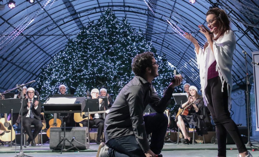 O Natal Luz fez a felicidade do casal de Fortaleza-CE na noite deste domingo, dia 12. Namorados há sete anos, Jean Livino Holanda e Andressa Rodrigues de Morais, ambos com 22 de idade, passavam ferias em Gramado e estavam na plateia do espetáculo com a Orquestra de Violões na Rua Coberta. Em meio ao show […]
