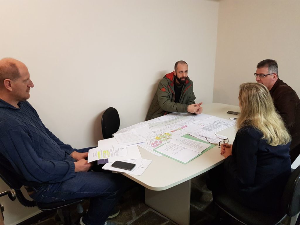 Os vereadores Everton Michaelsen (MDB) e Professor Daniel (PT) estiveram reunidos com a procuradora da Câmara, Sônia Molon e com o coordenador administrativo de habitação, da Secretaria de Cidadania e Assistência Social, Elias Lopes de Vargas, para falar do projeto da Prefeitura que dispõe sobre critérios para hierarquização de terrenos populares no Loteamento Carazal.