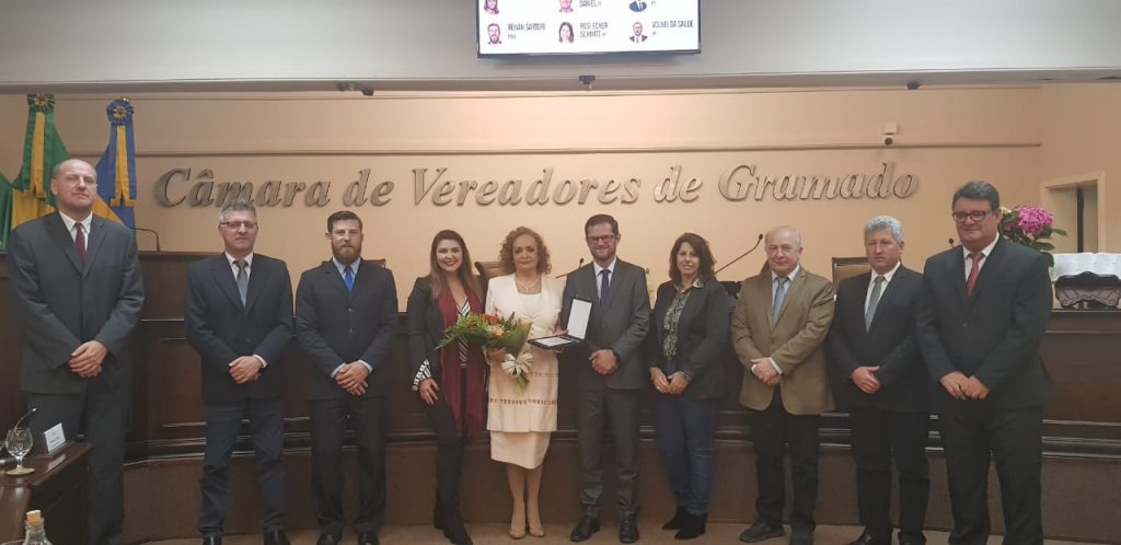 A artista plástica, Débora Irion, foi homenageada pelos vereadores com uma Moção de aplausos pelo trabalho desenvolvido pela artista. A entrega da honrariaaconteceu na sessão desta segunda-feira (04). A Moção de Aplausos visa respaldar a brilhante trajetória profissional de Débora Irion que já está em Gramado há mais de 30 anos.