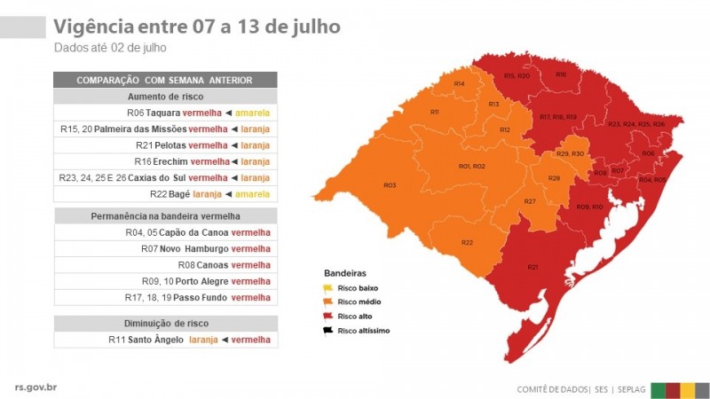 A atualização preliminar da 9ª rodada do Distanciamento Controlado indica que 10 regiões estão com risco alto, por isso, receberam bandeira vermelha. O mapa preliminar foi divulgado pelo governo no fim da tarde desta sexta-feira (03) e está disponível em https://distanciamentocontrolado.rs.gov.br. Desta vez Gramado não escapou, mas vai protocolar recurso. “Estamos bem embasados com normas técnicas, acreditamos […]