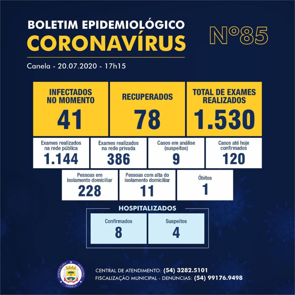 Segundo informações da Prefeitura, entre sexta-feira (17) e hoje (21) foram contabilizados oito novos casos de Covid-19 em 63 exames realizados. Com isso Canela possui 41 casos ativos de infectados no momento. Foram 1.530 testes realizados e registrados 120 casos confirmados desde o início da pandemia. Ao todo 78 pessoas já foram recuperadas. Atualmente 12 […]