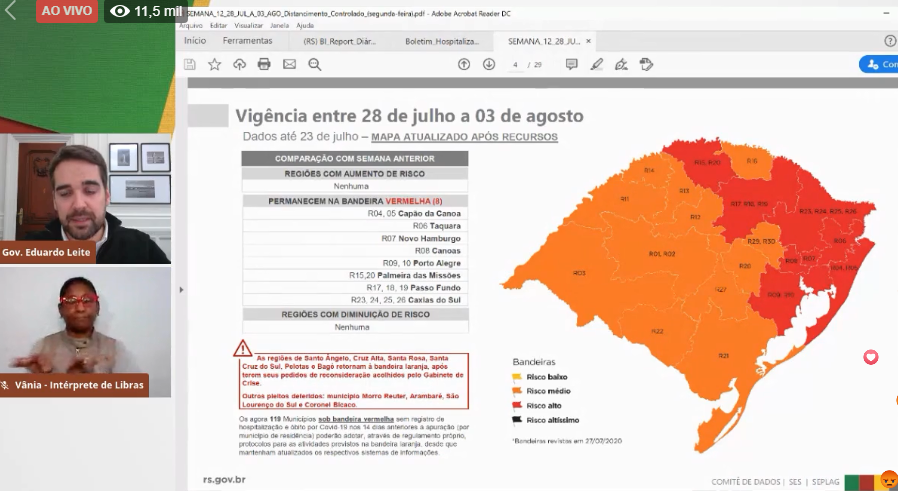 Em transmissão ao vivo pela internet, na tarde desta segunda (27), o governador Eduardo Leite anunciou o resultado da análise dos recursos contra o mapa do Distanciamento Controlado, anunciado na última sexta. A taxa de ocupação das UTIs no Estado, mesmo com as ampliações, é de 77,3%, sendo que a metade é de pacientes com […]