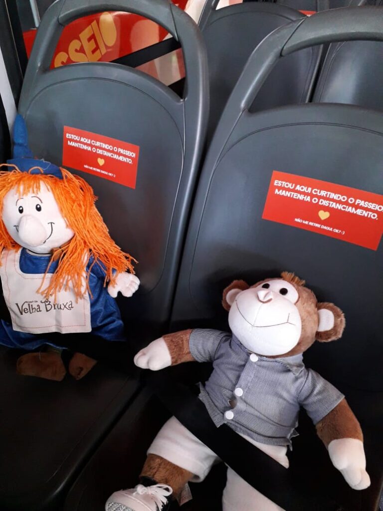 Bustour promove distanciamento controlado usando mascotes de atrações em miniatura