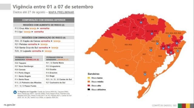 A macrorregião da Serra, a qual pertencem Canela e Gramado, segue em bandeira laranja, no mapa preliminar do Distanciamento Controlado do RS. Pouco mais da metade dos gaúchos está em área previamente classificada com bandeira vermelha. Os indicadores da 17ª rodada do Distanciamento Controlado, foram divulgados nesta sexta-feira (28) pelo Governo do Estado, e apontam […]