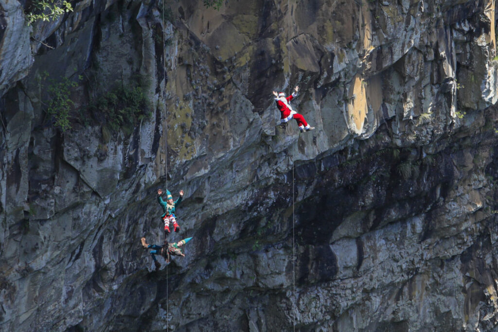 Papai Noel de Canela chega de rapel em Brasília