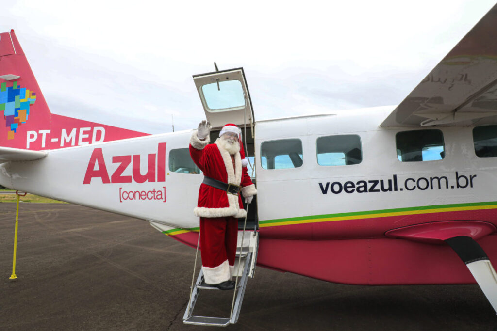 Papai NoeL recebe primeiro voo da Azul Linhas Aéreas em Canela