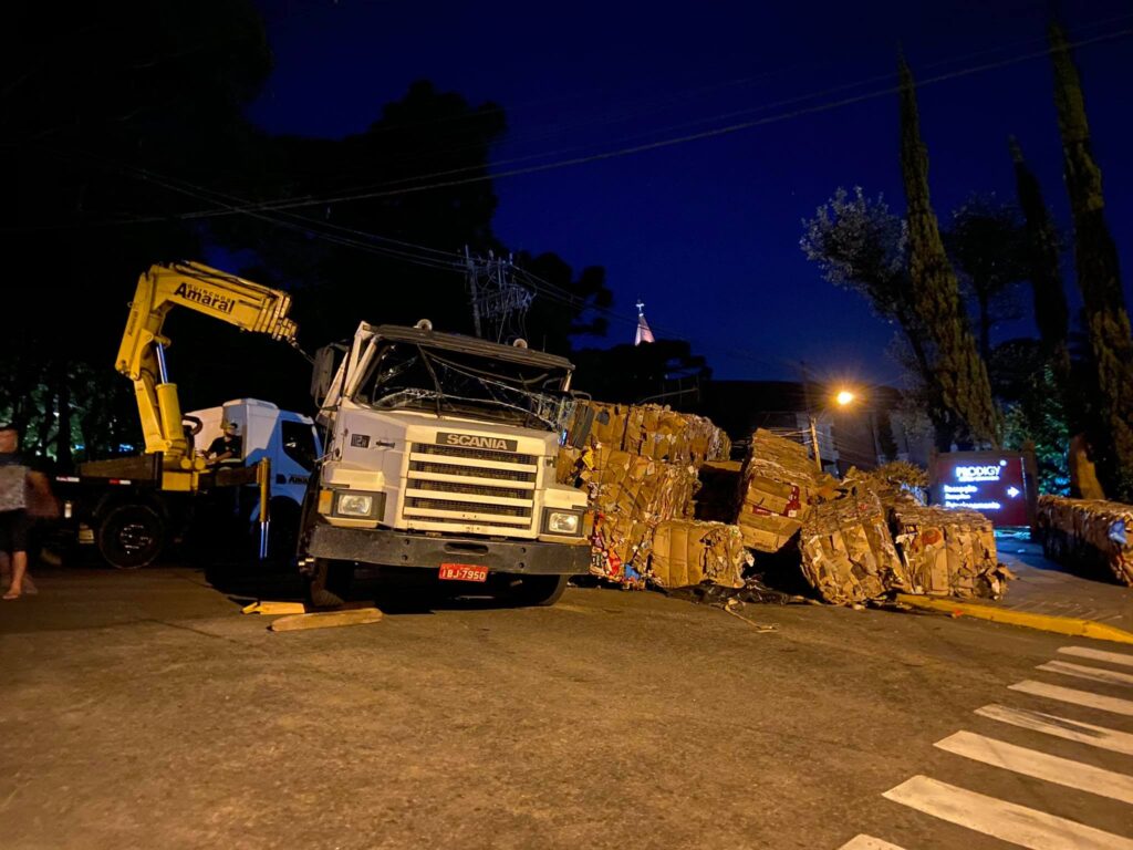 Um caminhão Scania, placas IBJ 7950 da cidade de Ermo, Santa Catarina, acabou tombando em torno das 22 horas da noite desta terça-feira (29) no centro de Gramado. O motorista acompanhado do seu filho nada sofreram. Eles estavam carregados com uma carga de papel e subiam a Rua Ângelo Bisol, e ao tentarem ingressar na Rua João Petry, sentido Canela, acabaram tombando com a carga que ficou junto a calçada do Prodigy Hotel. Dois caminhões guincho trabalham no local para erguer a carreta.