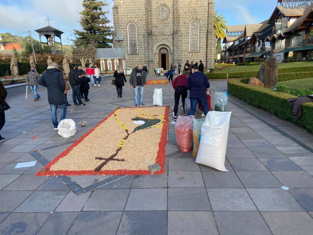 A manhã desta quinta-feira, dia 03 de junho, estava reservada para manter a tradição de Corpus Christi em Gramado. Fiéis da Paróquia São Pedro formaram grupos e prepararam os tapetes coloridos em comemoração a esta data especial de Corpus Christi. Os tapetes foram confeccionados com serragem colorida e flores em frente à Igreja Matriz São […]