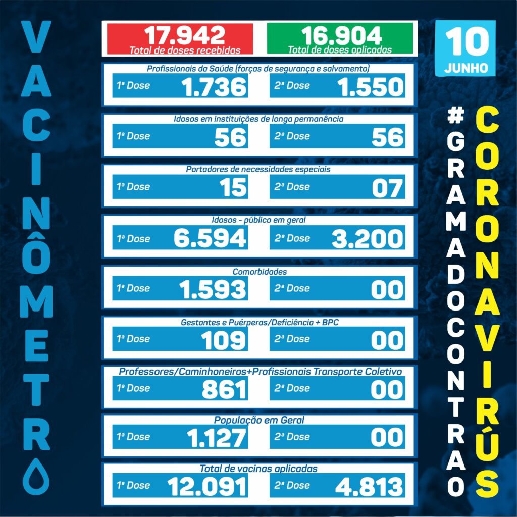 Em nova atualização do “Vacinômetro”, a Secretaria da Saúde de Gramado registra nesta quinta-feira (10), que pelo menos 44,05%, dos 27.444 gramadenses aptos a receber a vacina contra o coronavírus (Covid-19), foram imunizados. A Vigilância em Saúde, confirma, que na próxima semana, novas doses da vacina serão entregues e o objetivo é ampliar ainda mais […]