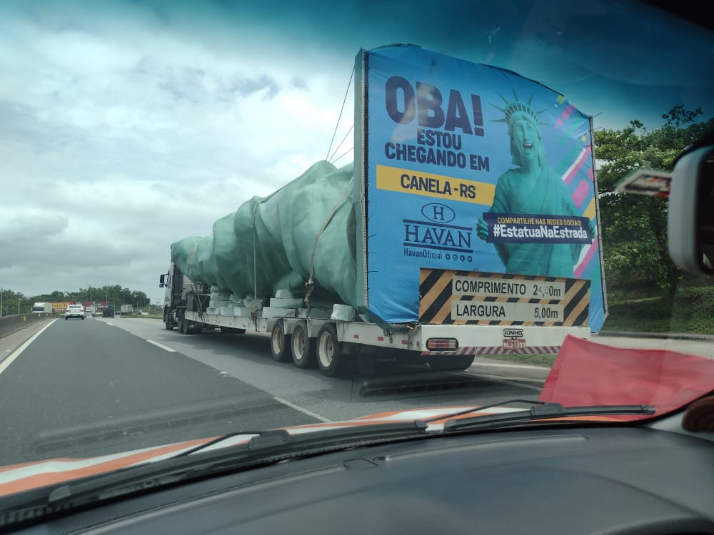 Estátua da Havan já pegou estrada rumo à Canela