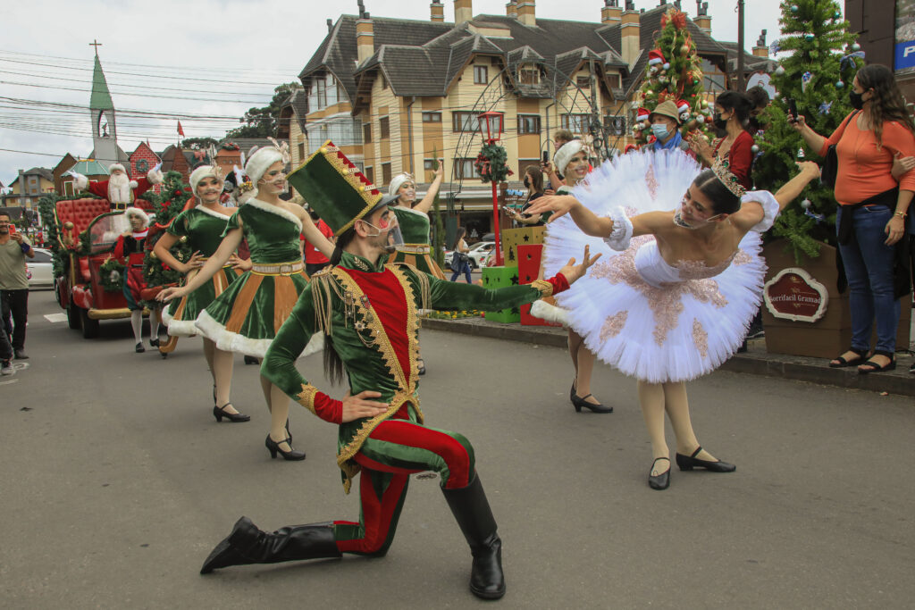 Parada de Natal encanta os visitantes nas ruas centrais de Gramado