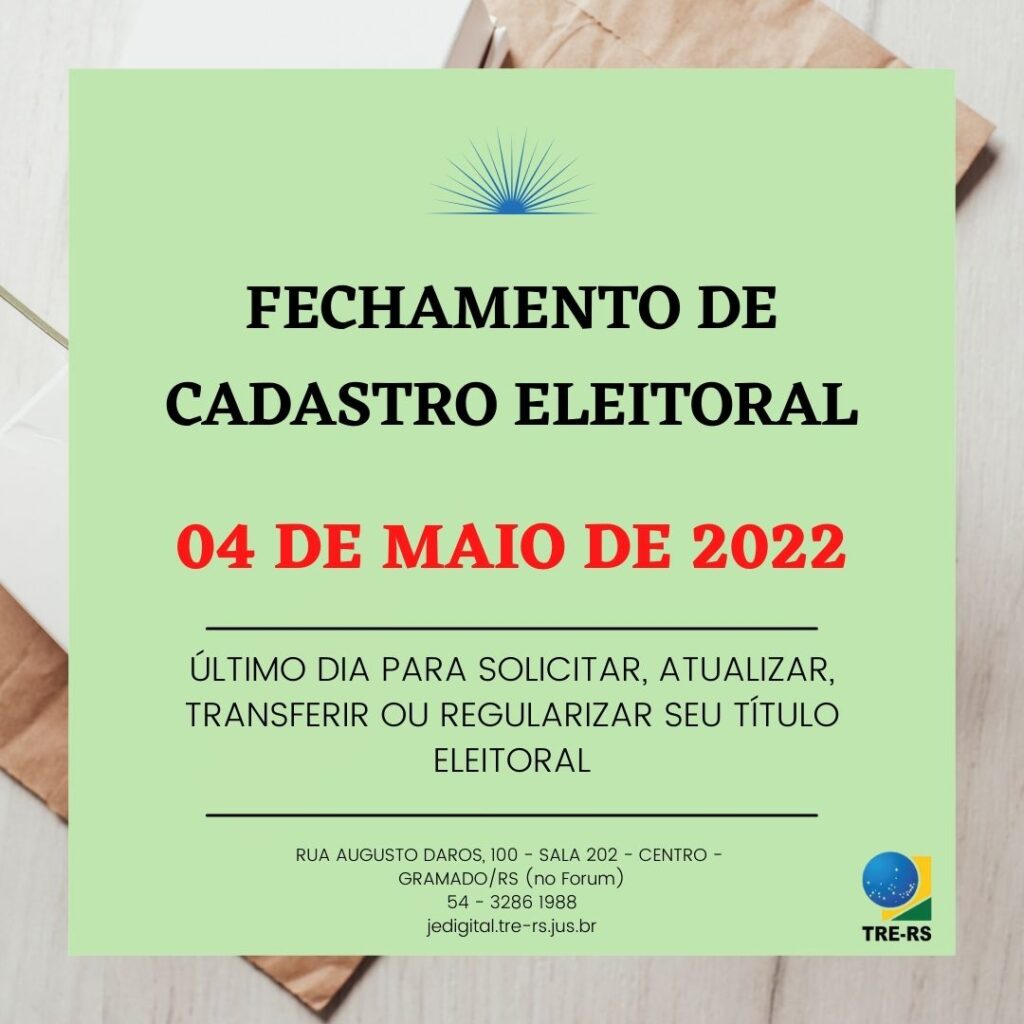O Cartório Eleitoral da região informa que por determinação do TRE/RS, para evitar que o eleitor precise se deslocar, todos os serviços disponíveis presencialmente continuarão a ser oferecidos no site: jedigital.tre-rs.jus.br Tudo visando evitar o acúmulo de filas, o atendimento presencial se dará prioritariamente mediante agendamento. Esse agendamento pode ser feito através do fone 148 […]