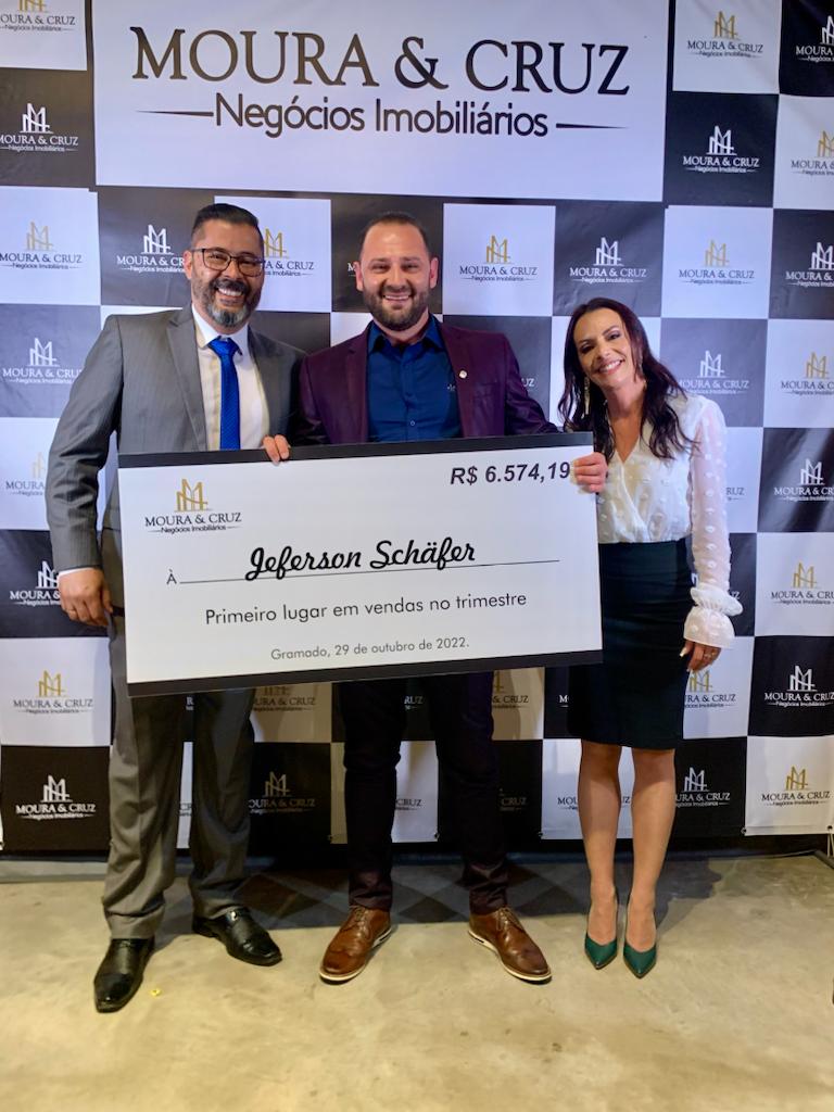 Comemorando 30 milhões em vendas no último trimestre, a Moura & Cruz, uma das mais tradicionais imobiliárias de Gramado, abre a temporada de verão de vendas de imóveis em Gramado e Canela na Serra Gaúcha. Dentre os principais pontos da comemoração foi entregue ao campeão de vendas Jeferson Schäfer o cheque de premiação, e aos membros Cristiano Cruz, Élika Robrigues e Grazieli Rosa, foram entregues as placas de reconhecimento pelos seus êxitos em suas funções.