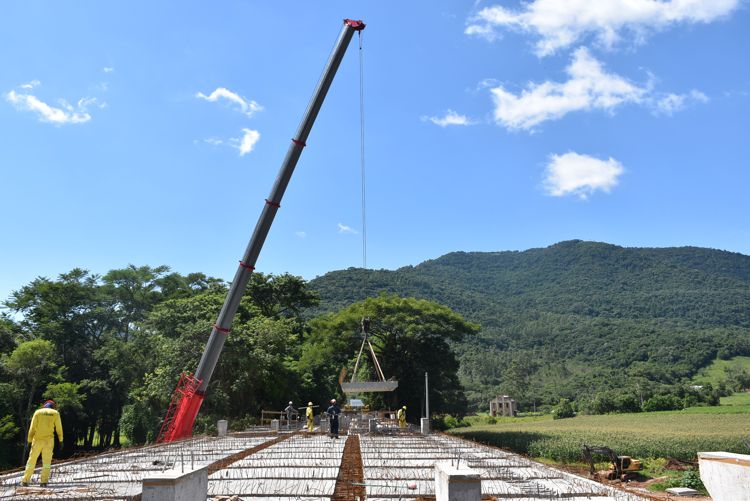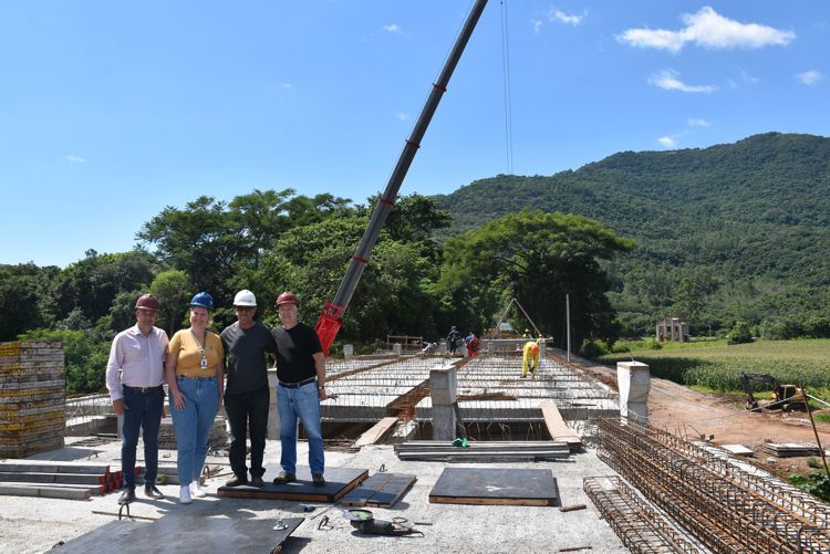 Na manhã da sexta-feira, 6 de dezembro, o prefeito Jorge Darlei Wolf e o vice-prefeito Martim Wissmann estiveram na nova ponte, conferindo o andamento das obras. A engenheira civil Laura Schmitt, da Secretaria de Planejamento, acompanhou a visita ao canteiro de obras.