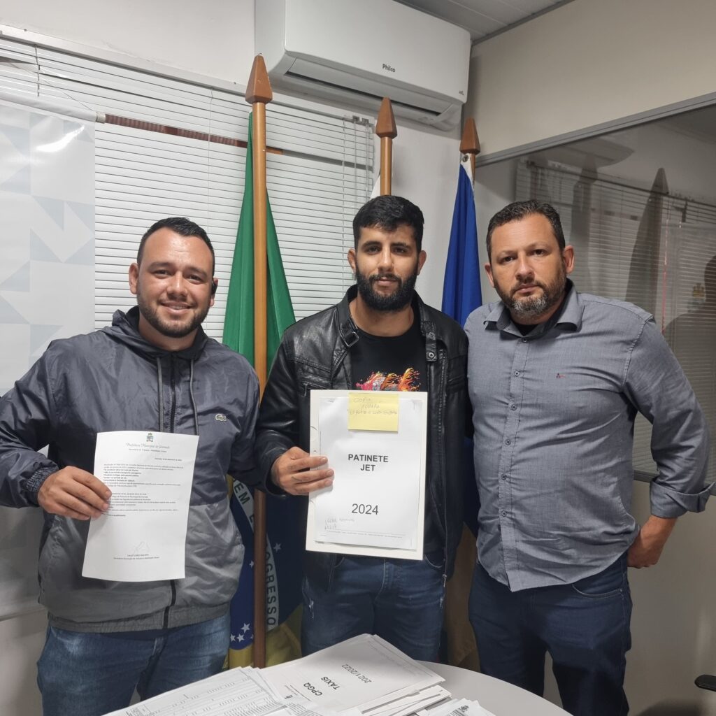 A Administração Municipal de Gramado, por meio da Secretaria de Trânsito, está realizando reuniões com as empresas responsáveis pela prestação de serviços de alugueis de patinetes no município, com o propósito de fazer um alerta sobre a importância do cumprimento das regras impostas pela legislação. O secretário titular da pasta, Tiago Procópio, recebeu nesta semana representantes da empresa Jet, oportunidade em que entregou cópias do Código de Posturas do Município e da Resolução nº 996/2023, do Conselho Nacional de Trânsito (Contran).