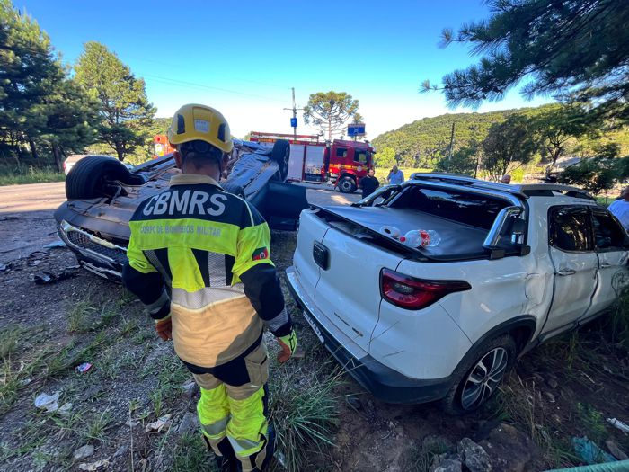 Com a colisão um dos veículos capotou, e segundo os Bombeiros de Canela, as vítimas não sofreram ferimentos.