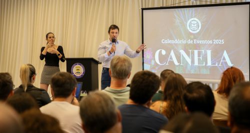 Em coletiva de imprensa realizada no Grande Hotel Canela, na manhã desta quinta-feira, dia 6, a Secretaria de Turismo de Canela apresentou o Calendário Oficial de Eventos 2025. Com uma programação rica e diversificada, o Calendário Oficial neste ano conta com oito eventos oficiais. São eles: a Páscoa em Canela, a Semana dos Namorados, a Temporada de Inverno, a Feira do Livro, a Festa Colonial, a Semana Farroupilha, o Festival Internacional de Teatro de Bonecos e o Sonho de Natal.