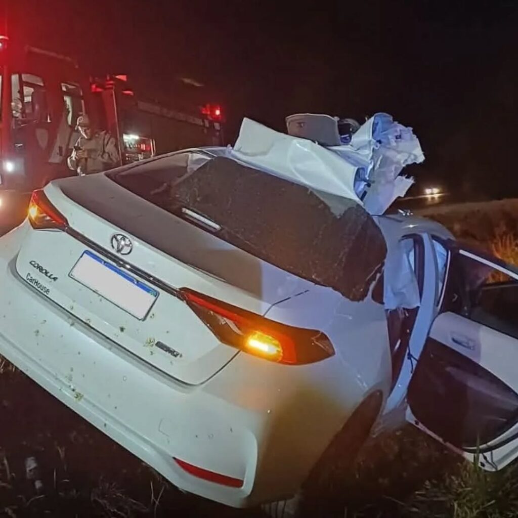 No choque, parte do veículo Corolla ficou destruído devido ao impacto.