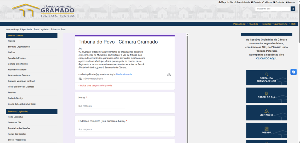 Câmara de Gramado moderniza inscrições para a Tribuna do Povo