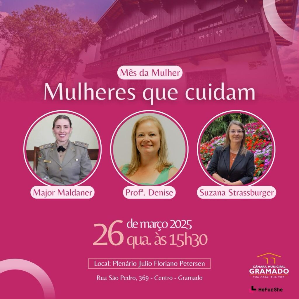 A Câmara de Vereadores segue com sua programação especial pelo Mês da Mulher e, na próxima quarta-feira, dia 26, às 15h30, realizará um bate-papo no plenário Júlio Floriano Petersen. O encontro será conduzido pela vereadora Professora Denise (Progressistas) e trará como tema as mulheres que atuam na saúde e segurança do município. Para enriquecer a […]