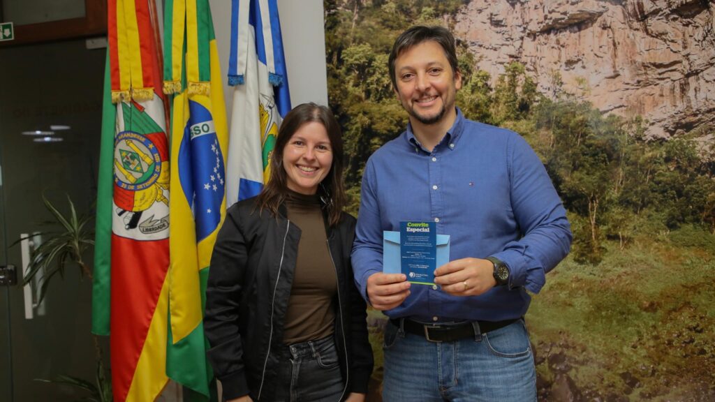 O prefeito de Canela, Gilberto Cezar, recebeu oficialmente o convite para a inauguração do Hotel DoubleTree by Hilton, empreendimento que marca a chegada da renomada rede hoteleira internacional à cidade. A entrega do convite foi realizada pela gerente geral do empreendimento, Cinzea Nunes. A cerimônia de abertura está prevista para ocorrer nos próximos dias, consolidando […]