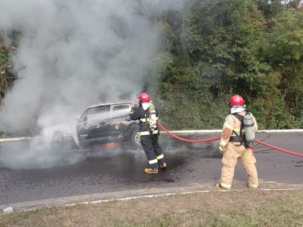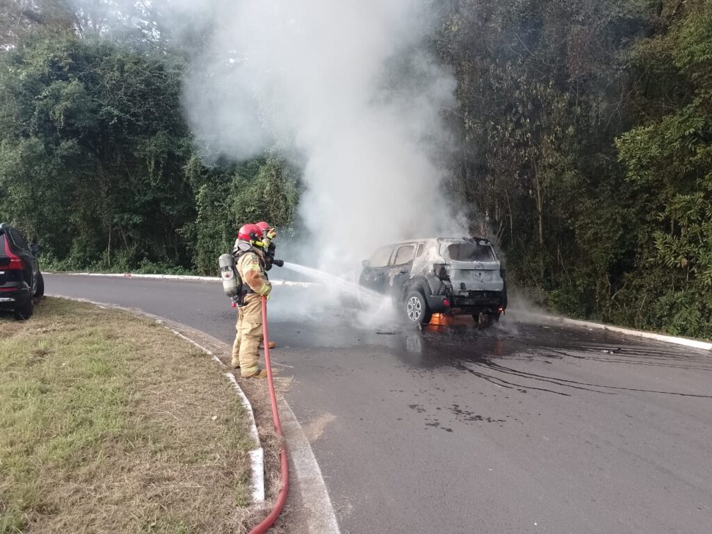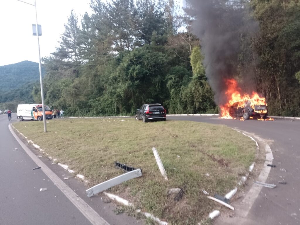 Com o choque o Jeep Renegade acabou pegando fogo. Os ocupantes do veículo conseguiram sair. Não houve vítimas.