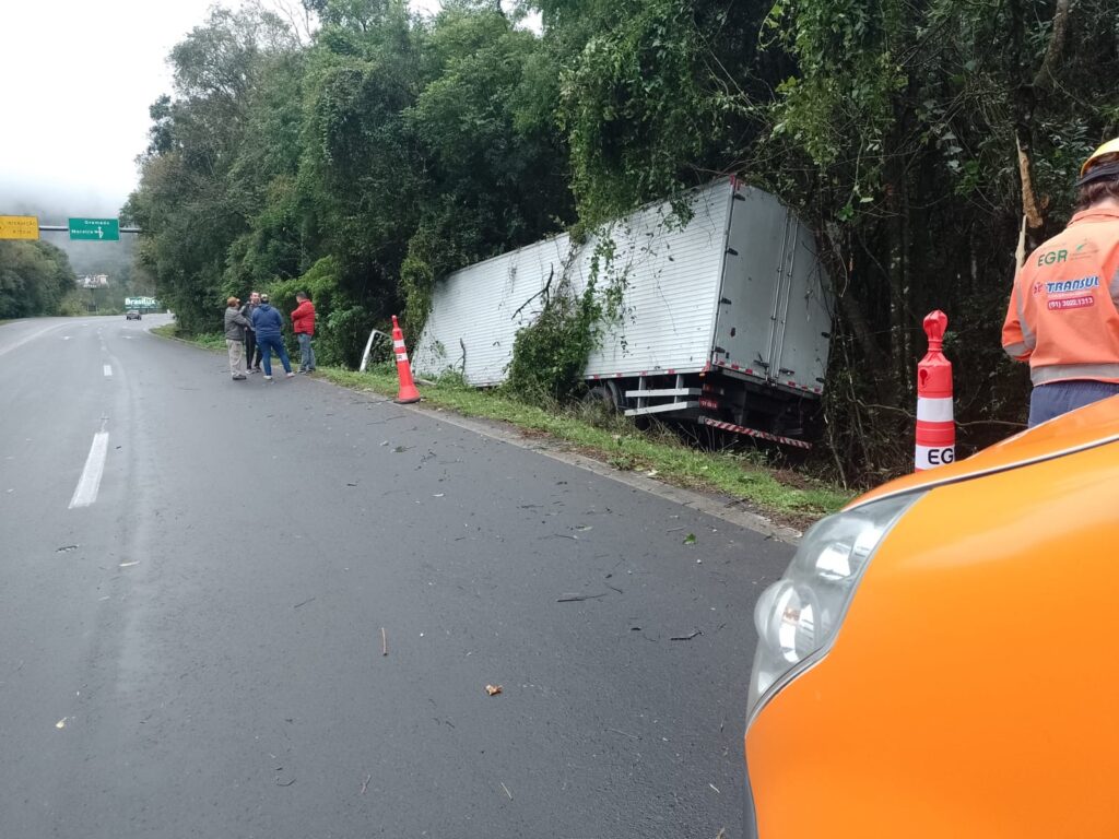 Um caminhão-baú com placas de Canela saiu da pista na manhã desta quinta-feira (19) na ERS 115, km 25, sentido Gramado a Três Coroas. O acidente aconteceu às 8h20 da manhã de hoje (19) e não houve feridos. A equipe da EGR e PRE atenderam a ocorrência.