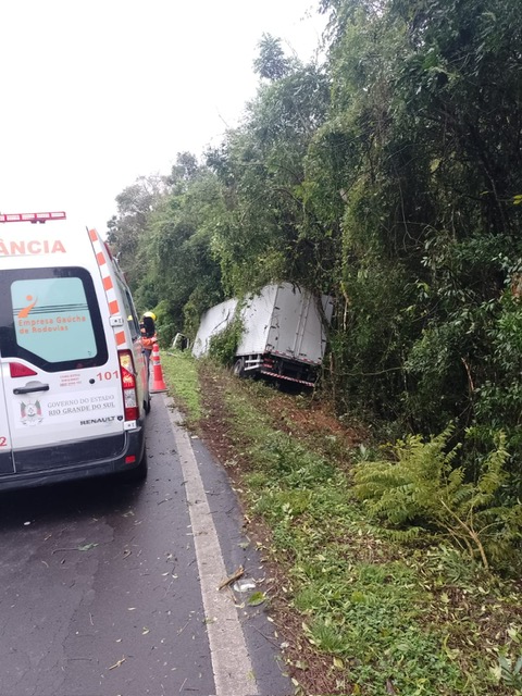 Um caminhão-baú com placas de Canela saiu da pista na manhã desta quinta-feira (19) na ERS 115, km 25, sentido Gramado a Três Coroas. O acidente aconteceu às 8h20 da manhã de hoje (19) e não houve feridos.