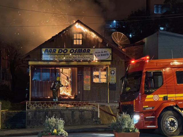 Madrugada triste em Gramado. Um incêndio de proporções atingiu o prédio/casa onde funcionava o Bar do Osmar na Avenida Borges de Medeiros em Gramado. Os bombeiros de Gramado combateram o fogo, mas a casa de madeira ficou totalmente destruída. O incêndio iniciou em torno das 3h20 desta sexta-feira (29). “Finalizamos os trabalhos agora”, disse ao Blog do Capitão Sanhudo do Corpo de Bombeiros de Gramado.