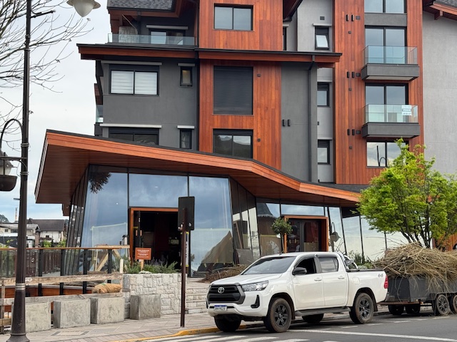 Um dos elementos que chama a atenção no projeto do Soleil Casa Perini é que um painel com troncos retirados de rios depois da enchente de 2024 estará fixado na entrada do local.