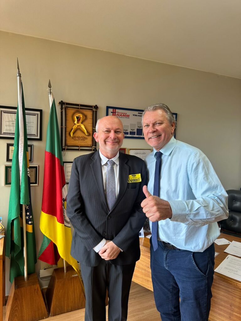 O prefeito Nestor Tissot e o secretário de Governança, Germano Junges, cumpriram agendas oficiais em Brasília, na semana passada, onde deram andamento em demandas de interesse do município que estão tramitando junto ao Governo Federal. Na Câmara dos Deputados, o secretário Germano Junges foi recebido nos gabinetes dos Dep. Federais Afonso Hahn (Progressistas) e Marcel Van Hatten (Novo), onde agradeceu as emendas parlamentares destinadas para Gramado neste ano e protocolou novas demandas do município, nas áreas da saúde e infraestrutura urbana.