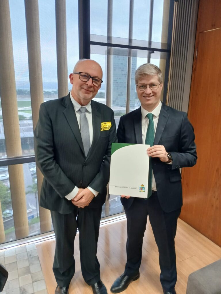 Já na Secretaria Nacional de Proteção e Defesa Civil, o prefeito Nestor Tissot e o secretário Germano Junges receberam a aprovação do projeto de reconstrução e a confirmação do empenho no valor de R$ 12.930.000,00 para a recuperação de trechos das Ruas Henrique Bertoluci, Guilherme Dal Ri e Afonso Oberherr, localizadas no bairro Piratini Norte. “Essa é uma conquista da comunidade gramadense e de toda nossa equipe de governo, em especial aos servidores da Secretaria de Governança que trabalharam ao longo dos últimos meses neste projeto complexo. Também temos contrapartidas do Governo do Estado e do próprio município e agora vamos dar seguimento aos trâmites burocráticos para que possamos realizar o processo licitatório da obra o quanto antes”, revela o prefeito Nestor Tissot.