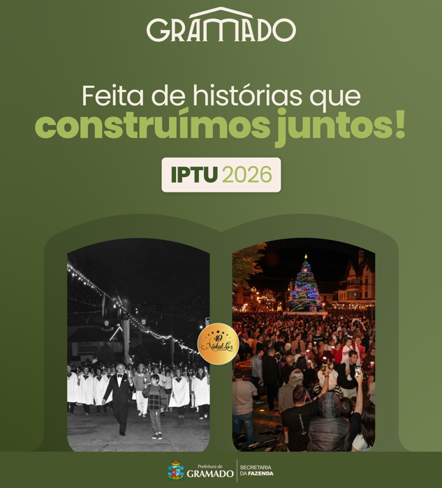 A Prefeitura de Gramado anuncia que o IPTU 2026 será totalmente digital, reforçando seu compromisso com a modernização dos serviços públicos, a sustentabilidade e a eficiência na gestão. A guia do imposto poderá ser acessada e emitida online a partir da primeira quinzena de janeiro. Neste ano, não haverá envio de guia física pelos Correios, […]