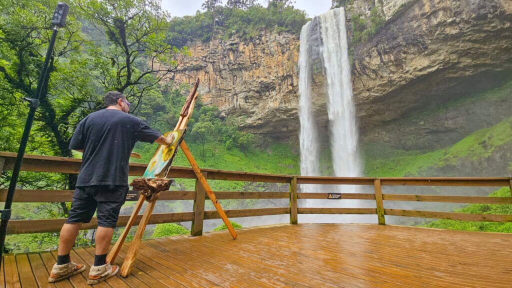 Para o artista, a experiência de pintar no Pé da Cascata do Caracol foi