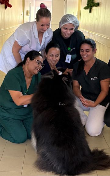 A ação realizada no Hospital São Miguel foi uma experiência extremamente emocionante. “Ver a reação das pessoas ao interagirem com o Zeus, sejam pacientes ou colaboradores do hospital, é algo que nos deixa sem palavras. Cada sorriso, cada olhar atento, cada carinho recebido é profundamente comovente. Sempre dizemos que o Zeus tem uma energia quase infinita, mas durante as visitas algo muda. Ele parece sentir o ambiente, compreender o momento e, naturalmente, se acalmar. A reação dos pacientes é linda: sorrisos sinceros, mãos estendidas, olhares cheios de carinho. E o Zeus responde com presença, calma e muito afeto. Saímos dessas visitas com o coração aquecido e a alma renovada”, relatam.