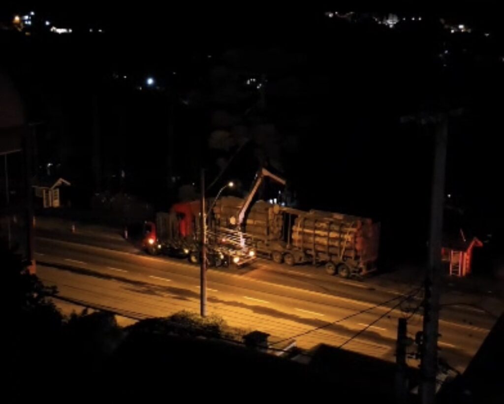 Um caminhão carregado com toras não respeitou a altura permitida para o pórtico de Gramado na ERS 235 em torno das 19 horas desta segunda-feira (06) e acabou colidindo com a estrutura. A motorista de um automóvel que vinha atrás do caminhão quase foi atingida. A altura permitida é de 3,70m.