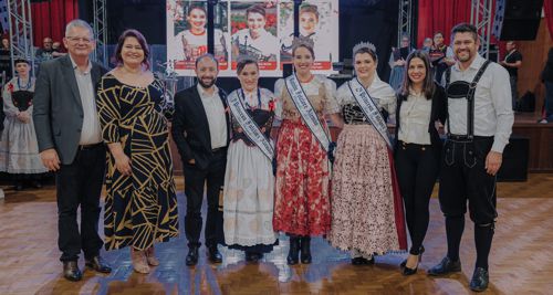 Após o anúncio dos resultados, coroação e premiação das eleitas, a Corte do Folclore Alemão 2026, formada pela Rainha Jéssica Fernanda Schaab, 1ª Princesa Olívia Nienow e 2ª Princesa Ketrin Ananda Kich conduziram a Polonaise ao som da Banda Nina.