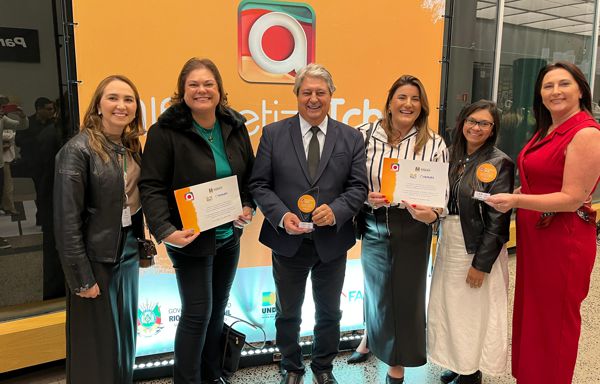 Duas instituições de ensino de Gramado, a Escola Municipal Henrique Bertoluci Sobrinho e a Escola Estadual N. Sra. da Pompeia, ambas de Ensino Fundamental, foram premiadas nesta segunda-feira (27), pelo Governo do Estado, por obterem os melhores indicadores de alfabetização no último ano entre os municípios da 4ª Coordenadoria Regional de Educação. A iniciativa integra o Programa Alfabetiza Tchê e a solenidade foi realizada no auditório do Teatro da Orquestra Sinfônica de Porto Alegre (Ospa), contando com a presença do governador Eduardo Leite, do vice-governador Gabriel Souza e da secretária Estadual da Educação, Raquel Teixeira.