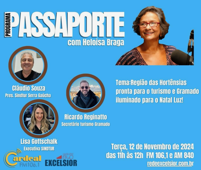 O presidente do Sindtur Serra Gaúcha, Claudio Souza, a Executiva da entidade, Lisa Gottschalk, e o Secretário de Turismo de Gramado, Ricardo Reginatto, participam às 11 horas desta terça-feira, dia 12, de uma entrevista na Rede Excelsior de Comunicação de Salvador na Bahia, FM 106.1 e AM 840, no programa Passaporte com a jornalista Heloisa […]