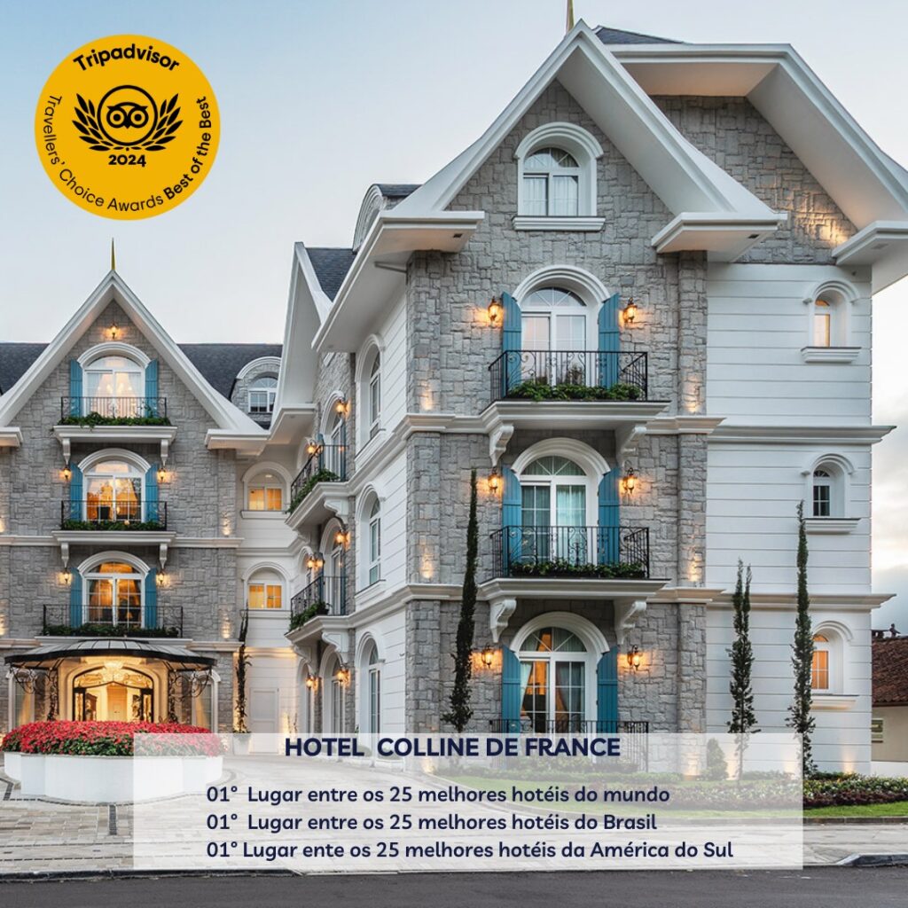 Bi-Mundial: Colline de France conquista pela segunda vez o título de “Melhor Hotel do Mundo”, no ranking “Os Melhores dos Melhores”, do prêmio “Travellers’ Choice 2024”, do TripAdvisor. Localizado em um dos principais destinos turísticos do Brasil, a cidade de Gramado, o hotel tem conceito, arquitetura e décor – com mobiliário esculpido a mão – inspirados no luxuoso Segundo Império Francês. “Podemos dizer […]