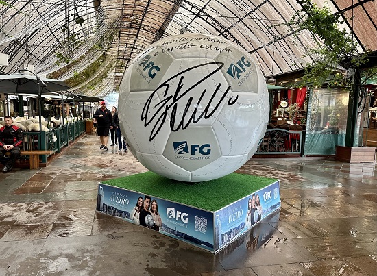Família Aveiro e FG Empreendimentos levam bola gigante de futebol para Gramado