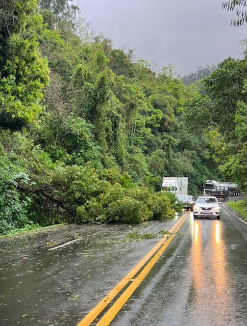 Queda de pedras e árvores deixa RS 115 em meia-pista