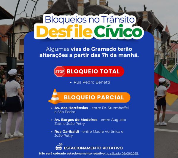 Celebração em homenagem à Pátria inicia às 10 horas, na Av. das Hortênsias! Com a previsão de tempo bom e temperaturas amenas, a Secretaria da Educação de Gramado confirma a realização do 1º Desfile Cívico do município para este sábado, dia 6, a partir das 10 horas, no Centro da cidade. A celebração inicia […]