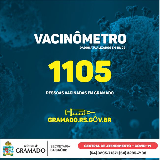 A Prefeitura de Gramado, por meio da Secretaria de Saúde e Vigilância Epidemiológica, vacinou 1.105 pessoas contra o coronavírus (Covid-19). Ao todo, o município recebeu 2.180 doses do Governo do Estado, através da 5ª Coordenadoria Regional de Saúde de Caxias do Sul. Das doses recebidas, 1.245 já foram aplicadas, incluindo a primeira e a segunda […]