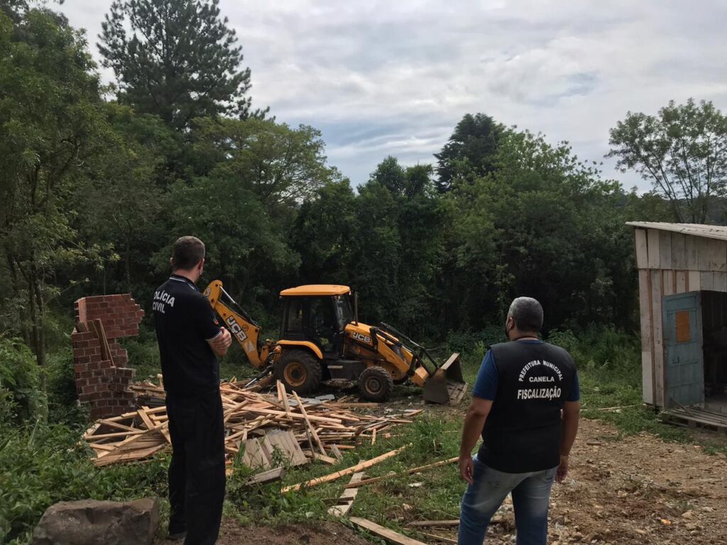 Uma operação conjunta envolvendo a Prefeitura de Canela e a Polícia Civil, resultou no desmanche de duas casas que estavam sendo construídas em áreas irregulares e oferecidas para venda e aluguel em redes sociais. A ação, desencadeada após uma denúncia, ocorreu na localidade conhecida como ‘Pedreira’, no interior do bairro Santa Marta. Com o auxílio […]