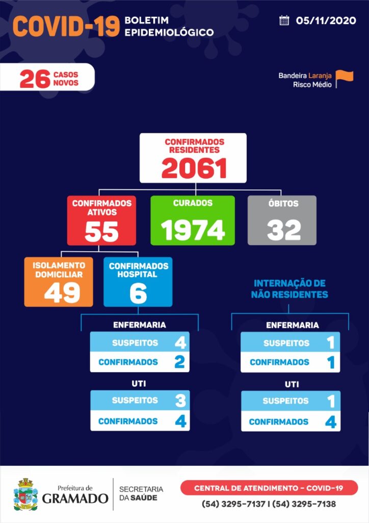 O boletim epidemiológico do Centro de Operações de Emergências (COE) de Gramado desta quinta-feira, dia 5, confirma 26 casos novos para Covid-19. Com isso, há 2.061 testagens positivas para residentes de Gramado.Deste total, 1.973 casos já estão recuperados e outros 49 moradores seguem em isolamento domiciliar. O Hospital Arcanjo São Miguel tem, atualmente, seis moradores de […]